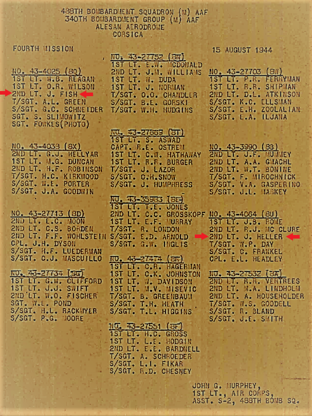 Heller made Avignon into Yossarian’s 37th mission, corresponding to Heller’s actual 37th mission. As with the morning mission, both Heller and Fish flew in the same formation.